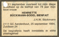 Marie Cornélie Charlotte Hartman (1913-1985) - overlijdensbericht